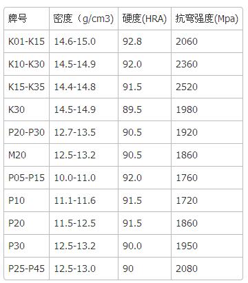 | 牌号 | 密度(g/cm3) | 硬度(HRA) | 抗弯强度(Mpa) |
