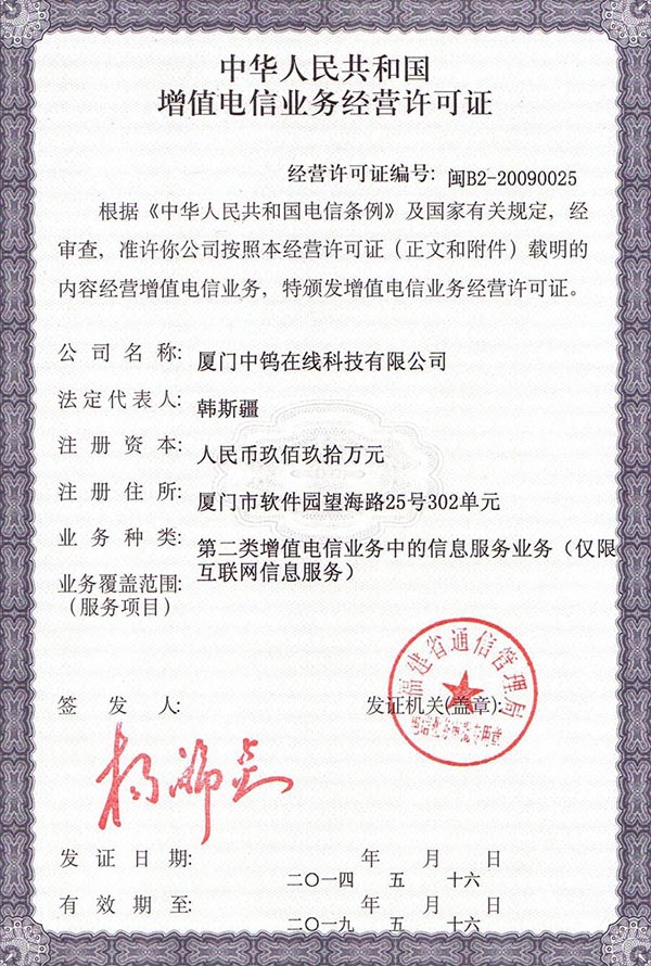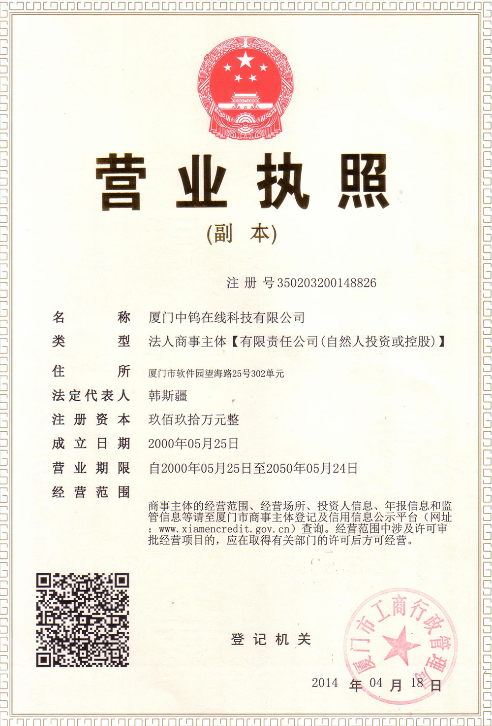 营业执照、税务登记证、代码证、出口资质、ISO9001:2008认证证书、闽B2-20090025、闽ICP备05002525号-1