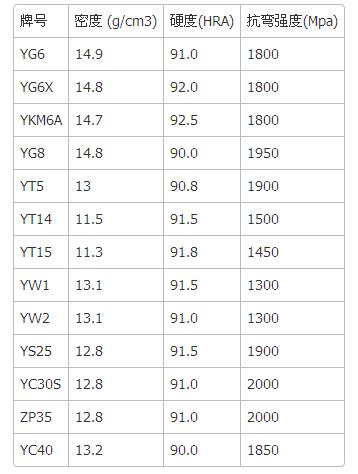 | 牌号 | 密度 (g/cm3) | 硬度(HRA) | 抗弯强度(Mpa) |